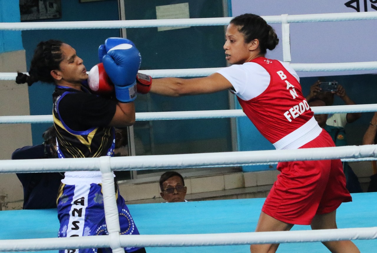 লড়াইটা যুক্তরাষ্ট্রে প্রশিক্ষণ নেওয়া বক্সার জিনাত ফেরদৌস বনাম বাংলাদেশে প্রশিক্ষণ নেওয়া আফরা খন্দকারের। তবে প্রবাসী বলেই জিনাতের খেলা দেখতে ভীড় ছিল মোহাম্মদ আলী বক্সিং স্টেডিয়ামে। যুক্তরাষ্ট্র প্রবাসী বক্সার জিনাত ফেরদৌস খুবই অ্যাটাকিং খেলছিলেন। তার প্রত্যেকটি পাঞ্চ আফরা খন্দকারকে আঘাত করছিল। তখন গ্যালারিতে বসা আফরার বোন জাতীয় নারী ফুটবল দলের অধিনায়ক আফঈদা খন্দকার মুখ ঢাকছিলেন। আবার যখন আফরা জিনাতের মুখে পাঞ্চিং করছিলেন, তখন ‘জোরে মার’ ‘জোরে মারো’ বলে চিৎকার করছিলেন আফঈদা। আজ বৃহস্পতিবার মোহাম্মদ আলী বক্সিং স্টেডিয়ামে অনুষ্ঠিত জাতীয় বক্সিং চ্যাম্পিয়নশিপে মেয়েদের ৫২ কেজি ওজন শ্রেনীতে তিন রাউন্ডের সবকটিতেই আনসারের আফরাকে হারিয়ে স্বর্ণপদক জিতে নেন প্রথমবার খেলতে আসা নরসিংদী গুডউইল বক্সিং ক্লাবের জিনাত ফেরদৌস।